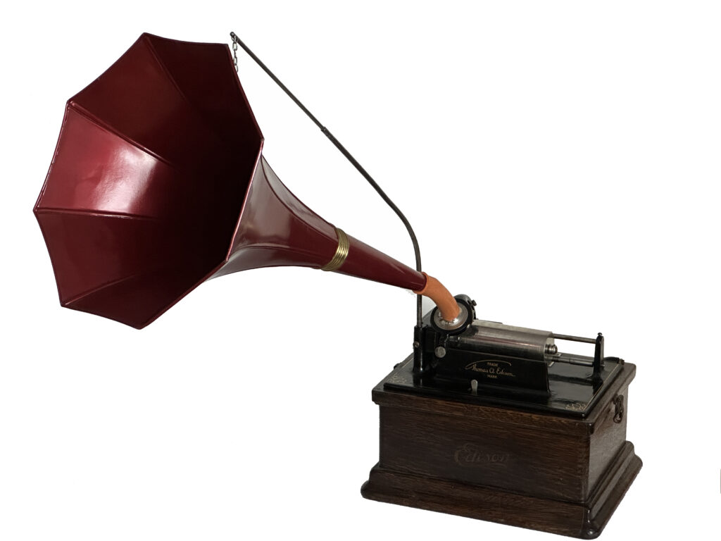 …reproducido en nuestro vistoso fonógrafo, también de la marca Edison; un Fireside (modelo A) de 1909.