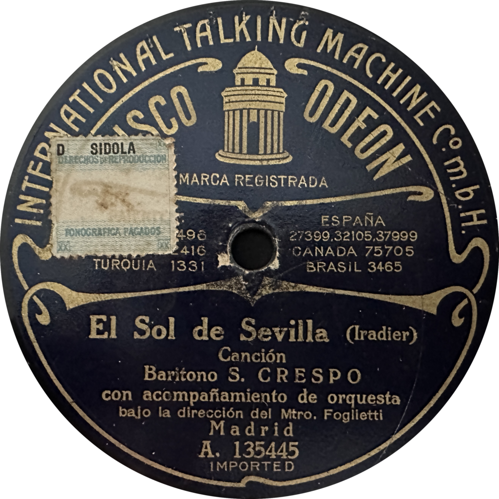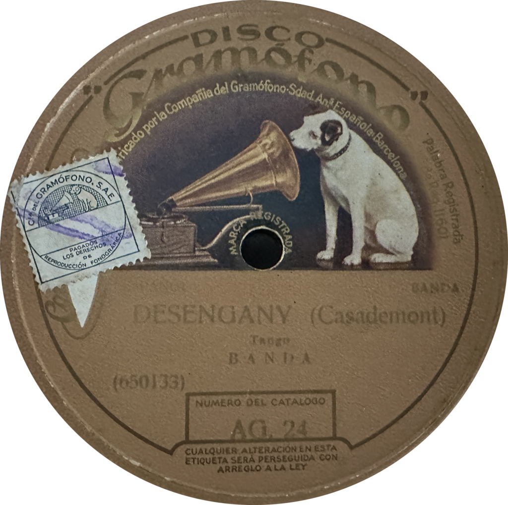 Además de las propias canciones que interpreta el propio Crespo, puedes escuchar, de fondo, Desengany interpretado por una banda anónima, que registró el tango en los gabinetes de la discográfica Gramófono.