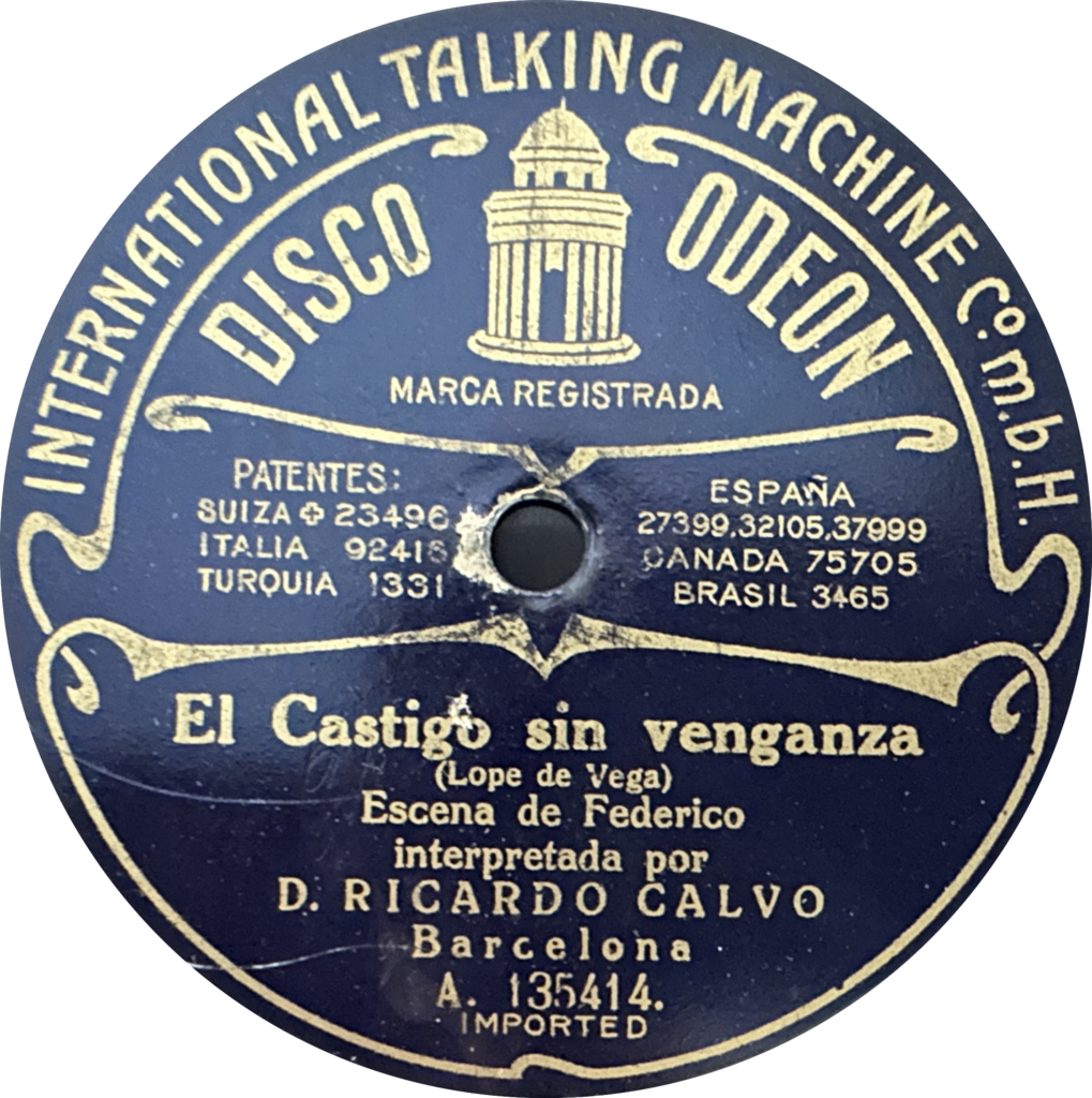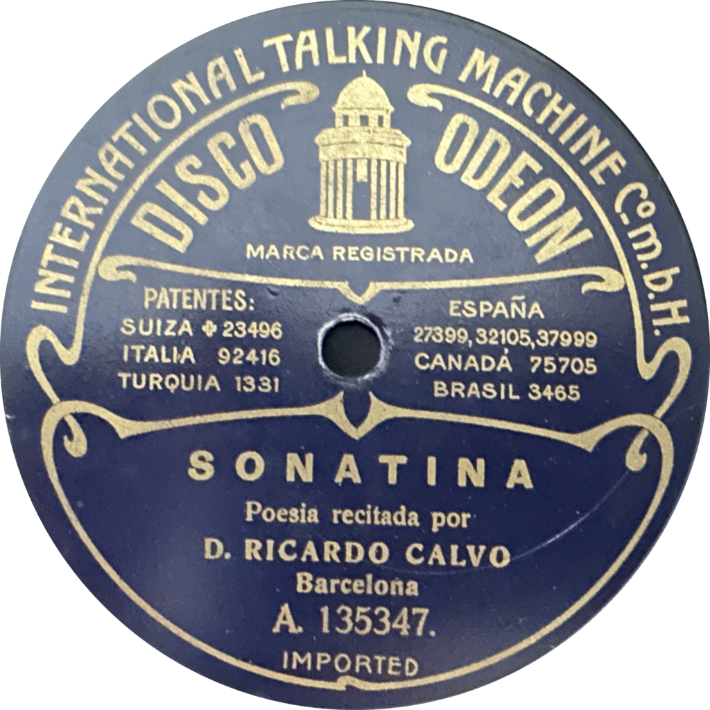 ¿Querías verso? Aquí tienes las etiquetas de los discos de Ricardo en Odeon, editados entre 1914 y 1918, que puedes escuchar en el episodio: fragmentos de Lope, Tirso, Calderón y, por si fuera poco… Rubén Darío ¡en sextinas!