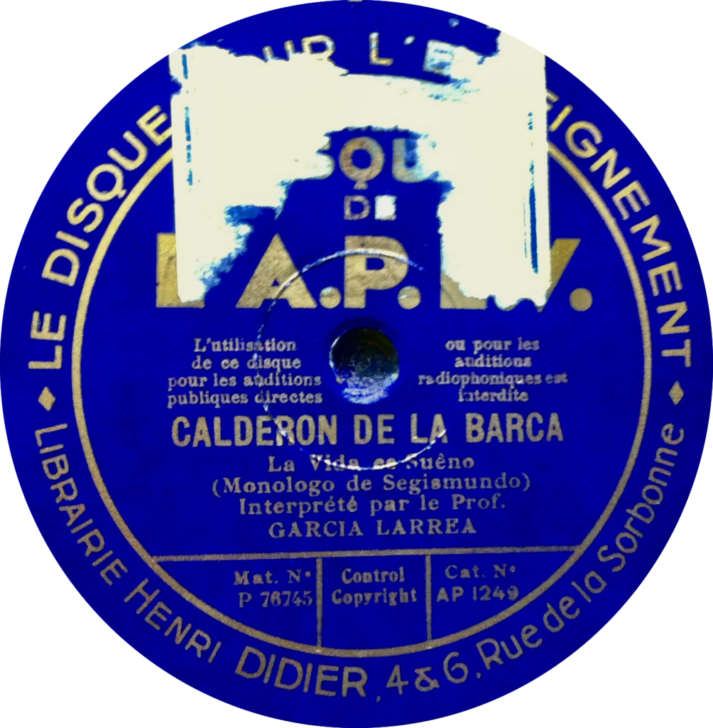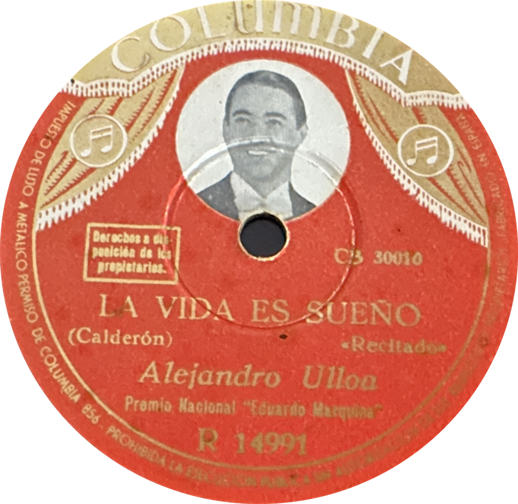 Durante ese periodo y en los pocos minutos que ofrecía la superficie de los discos de pizarra a 78rpm, los fragmentos que se solían registrar de La vida es sueño eran concretamente dos: los que corresponden a los versos 102-172 del acto primero y comienzan con el conocido Ay mísero de mí, hay infelice; y los que se denominaban habitualmente en etiquetas y catálogos como «Acto IV, monólogo», que corresponden al segundo acto versos 2146-2187, y que comienzan con el verso compartido de Basilio Es verdad pues reprímanos. Nosotros hemos tomado como referencia, para tomar la referencia de los números de verso, la popular y accesible edición de Ciriaco Morón de la editorial Cátedra de 1979.
